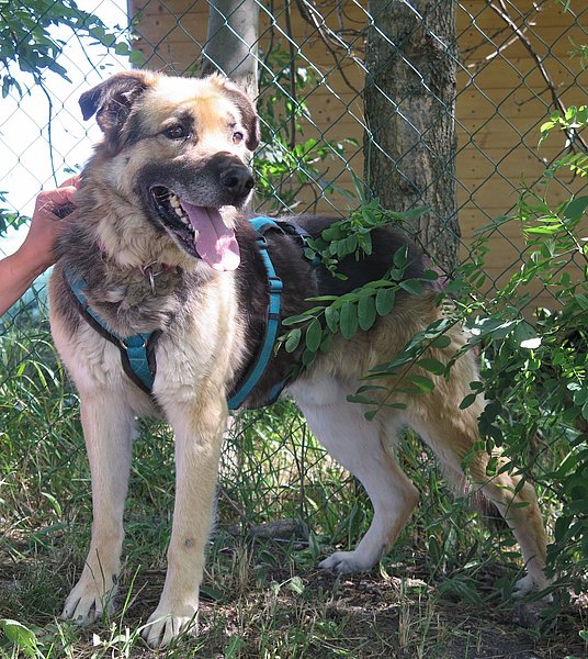 Andere Hunde findet Emmett im Großen und Ganzen toll, hier braucht er nur noch etwas Anleitung im Erstkontakt. Beim Kennenlernen von fremden Hunden wirkt er oft unbeholfen. Sind die anderen ihm dann aber vertraut (vor allem Hündinnen), ist die Welt für ihn in Ordnung und er macht es sehr gut. Aktuell läuft Emmett immer mehr im Hofrudel mit und teilt sich seine Box mit drei charmanten Hündinnen.