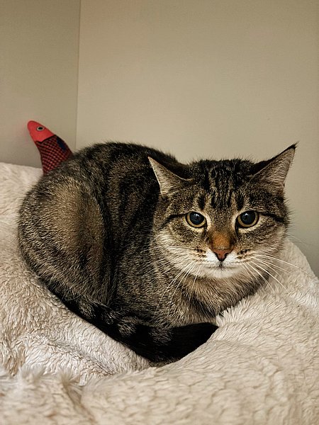 Blair ist eine ganz besondere und sehr mutige Katze. Eine Kämpferin, die viel erlebt hat und heute zeigt, wie viel Stärke in einem sanften Wesen stecken kann. Sie leidet an einer chronischen Leberinsuffizienz und wird ihr Leben lang auf Spezialfutter sowie Medikamente angewiesen sein. Aktuell ist sie gut eingestellt, lebt beschwerdefrei und soll genau so auch weiterhin leben dürfen. Gerne beraten wir ausführlich zu ihrer Therapie, den Abläufen und den zu erwartenden Kosten, Transparenz und gute Begleitung sind uns hier sehr wichtig.