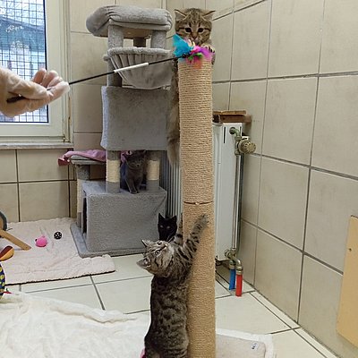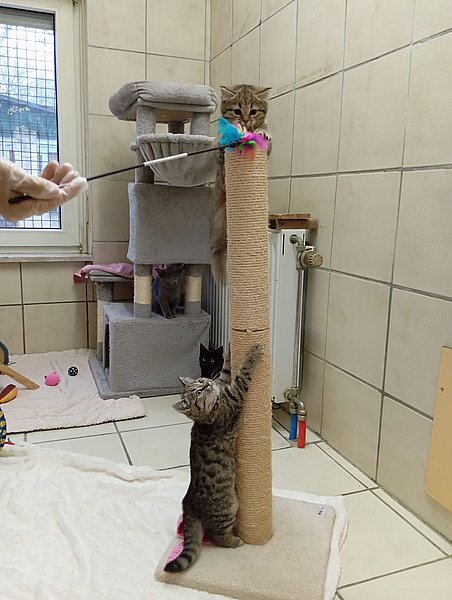 Saphira und Julian sind ein enges Team. Sie spielen miteinander, lernen voneinander und geben sich gegenseitig Sicherheit. Deshalb werden die beiden ausschließlich zusammen vermittelt. Kitten brauchen für eine gesunde Entwicklung unbedingt einen gleichaltrigen Spielpartner, nur so können sie sich sozial, körperlich und emotional richtig entfalten. Menschen können einen Artgenossen einfach nicht ersetzen.