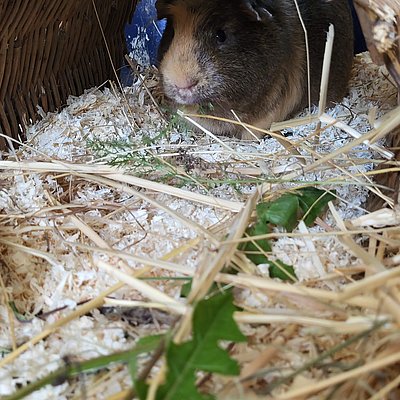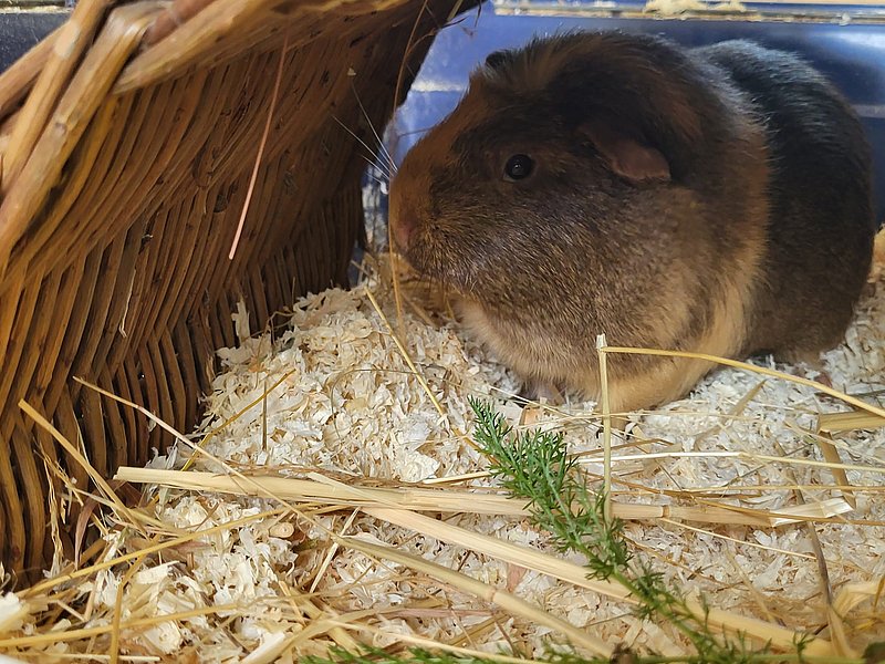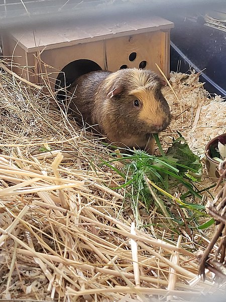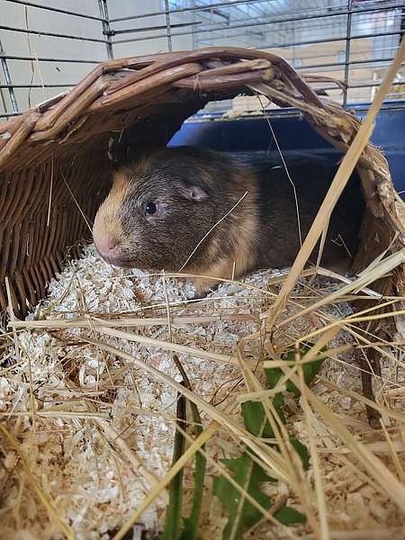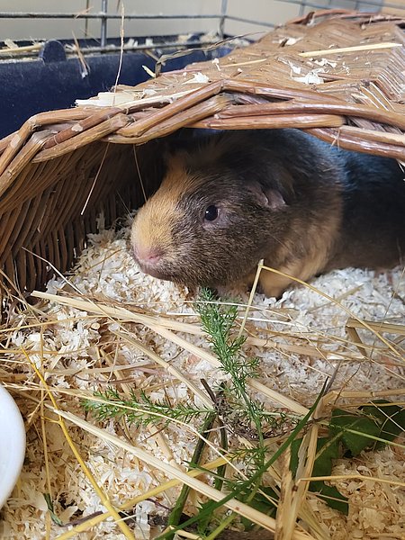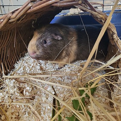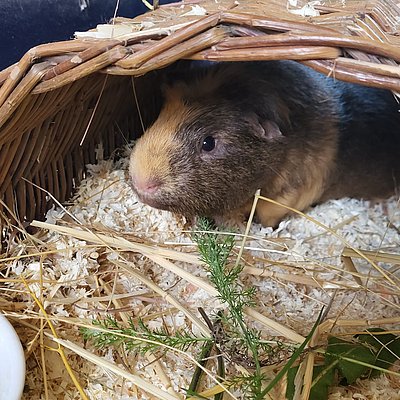 Unser lieber Fox ist ein eher zurückhaltendes Meerschweinchen, das gerade lernt, dass Menschen gar nicht so unheimlich sind. Er beobachtet lieber erst einmal aus sicherer Entfernung, bevor er sich traut, doch mit Geduld und Ruhe zeigt er, wie freundlich und sanft er wirklich ist.Auch unter Artgenossen bleibt Fox gerne im Hintergrund. Darum sucht er ein Zuhause in einer harmonischen Gruppe oder bei einem ruhigen, nicht dominanten Partner oder einer Partnerin.