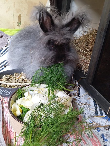 Isolde ist EC-positiv (Encephalitozoon cuniculi). Deshalb kommt eine Vergesellschaftung mit einem EC-negativen Tier nicht infrage. Sie braucht einen passenden EC-positiven Partner oder eine Gruppe bei erfahrenen Haltern, die mit der Krankheit vertraut sind und wissen, worauf zu achten ist. Derzeit zeigt Isolde keine Symptome mehr und ist topfit.