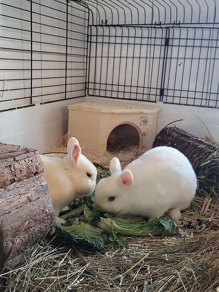 Unsere beiden Jungs Costa und Ronny sind aufgeweckt und sehr neugierig. Sie haben keine Angst vor Menschen, genießen den Kontakt und sind immer interessiert daran, was um sie herum passiert. Gemeinsam sind sie ein echtes Dreamteam🥰sie verstehen sich wunderbar, schlafen eng aneinander gekuschelt und putzen sich gegenseitig. Natürlich lieben sie auch alles, was grün ist: frische Wiese, Kräuter und leckeres Gemüse stehen ganz oben auf ihrer Wunschliste.